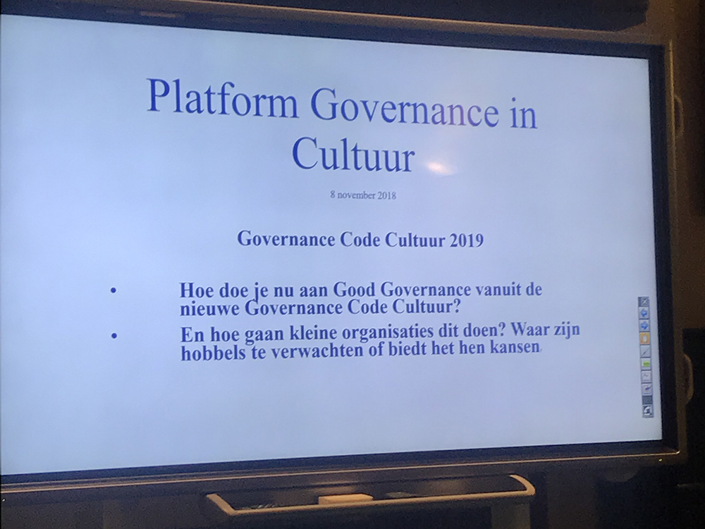 Platform Governance in Cultuur biedt maatwerk. Naast Tuinkamersessies en de Klankbordrol kunt u ons benaderen voor begeleiding zelfevaluatie of specifiek advies. Ook geven wij workshops over de toepassing van de Governance Code Cultuur 2019 binnen culturele instellingen.